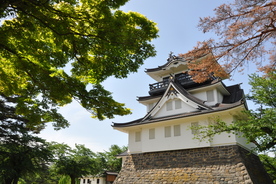 1550年ごろに築かれたと伝わる横手城跡には、天守閣様式の展望台が建つ。1階から3階は、美術品や工芸品などの郷土資料展示室、4階が展望フロアで、横手市街を一望できるビューポイント。