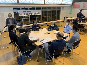 地区会議に設定いただいた「テーマ」に基づいて意見交換をします。また、参加者の方々が話しやすいように「グループ」に分かれて行いました。