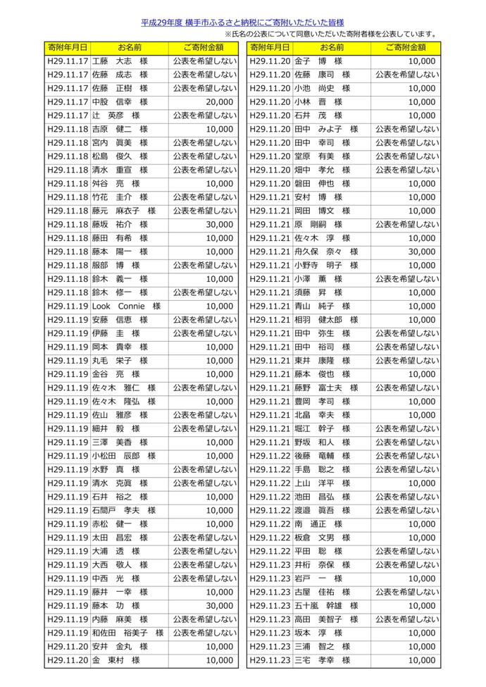 平成29年度にご寄附いただいた皆様のうち、氏名の公表について同意いただいた寄附者様を公表させていただきます。